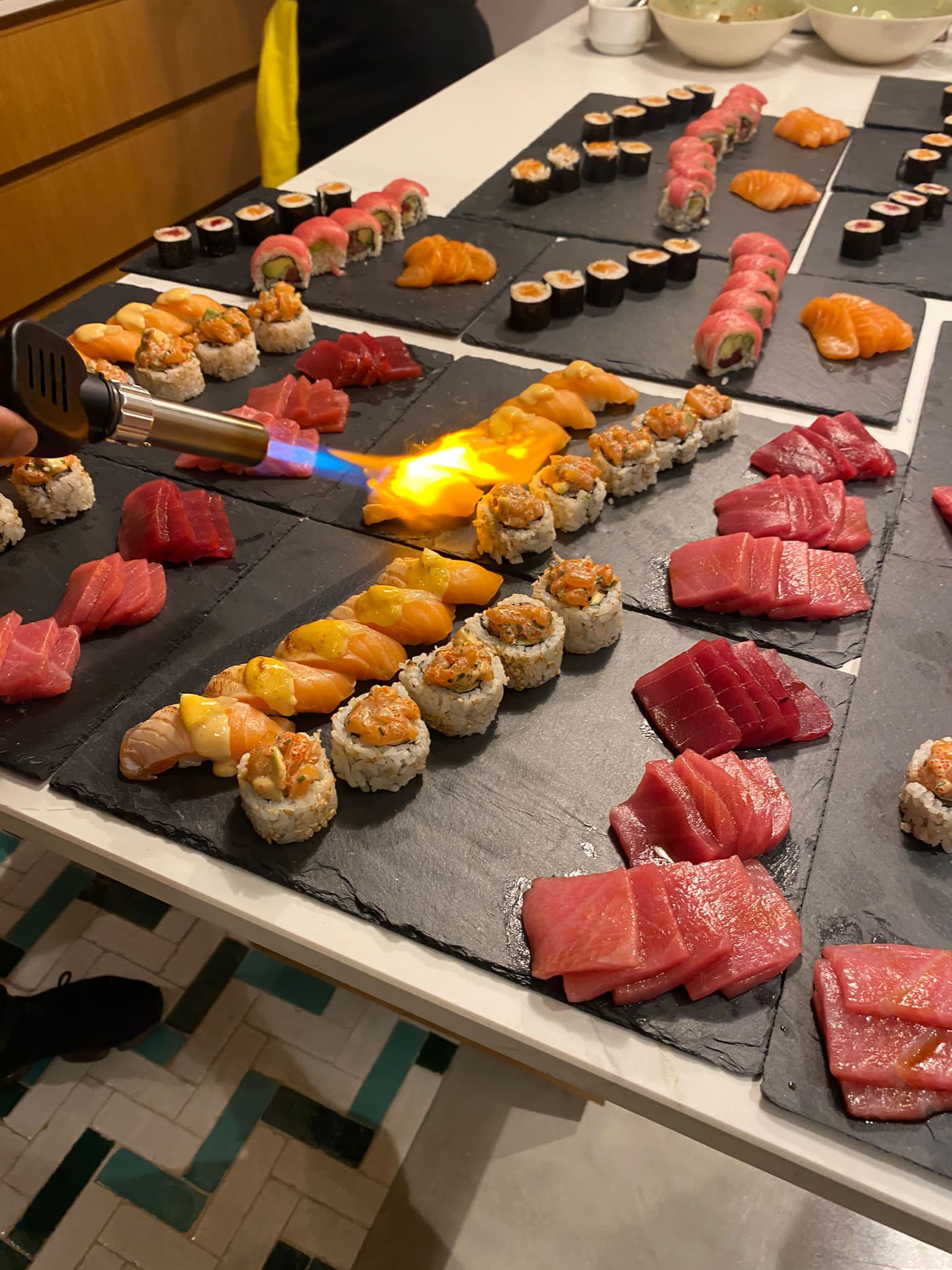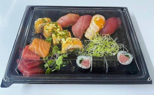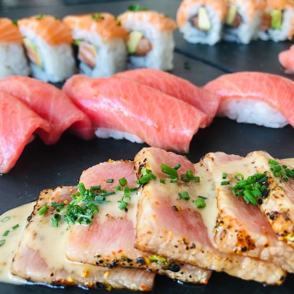 Los días de sushi a fuego Álex sushiman y su equipo nos prepara – por encargo – las mejores bandejas para llevar. Se recogen en el Latigazo.