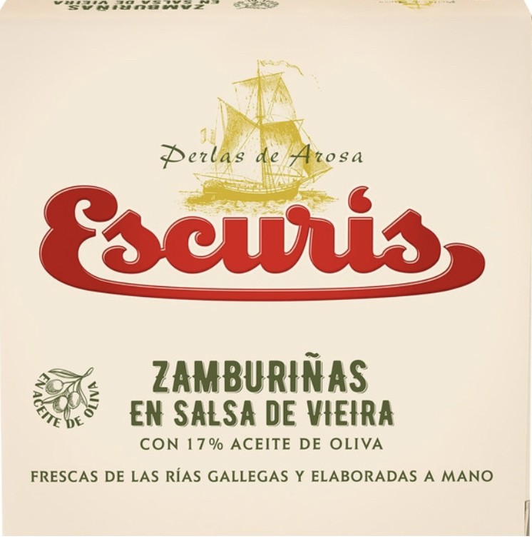 Ingredientes: Zamburiñas, cebolla, tomate concentrado, vino blanco, especias, pimiento rojo y sal.